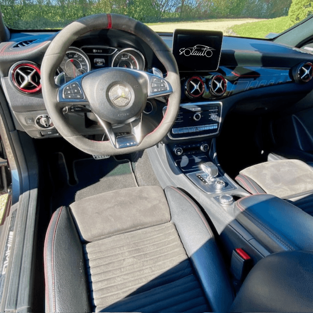 Mercedes CLA A45 AMG 7G-Speedshift DCT, 4 Matic, 162000km, MEC 09/2016, Mountaingrau métal. Seconde main achetée en concession, facture et bon de commande à l’appui avec tous les codes équipements et codes options (+ de 16000 € d’options). Entretien suivant les préconisations du constructeur. Aucun frais à prévoir. Propriétaire très soigneux, et unique conducteur.