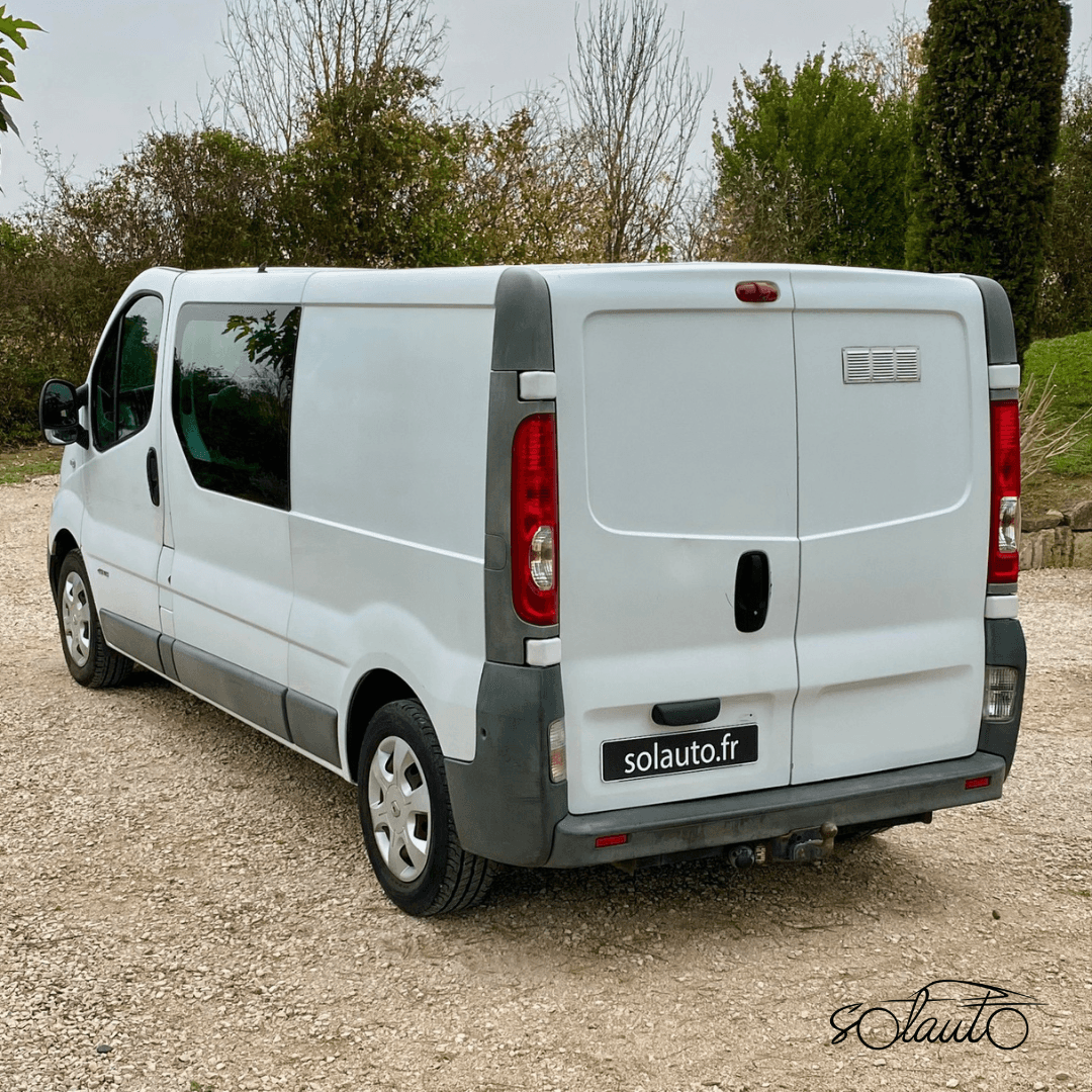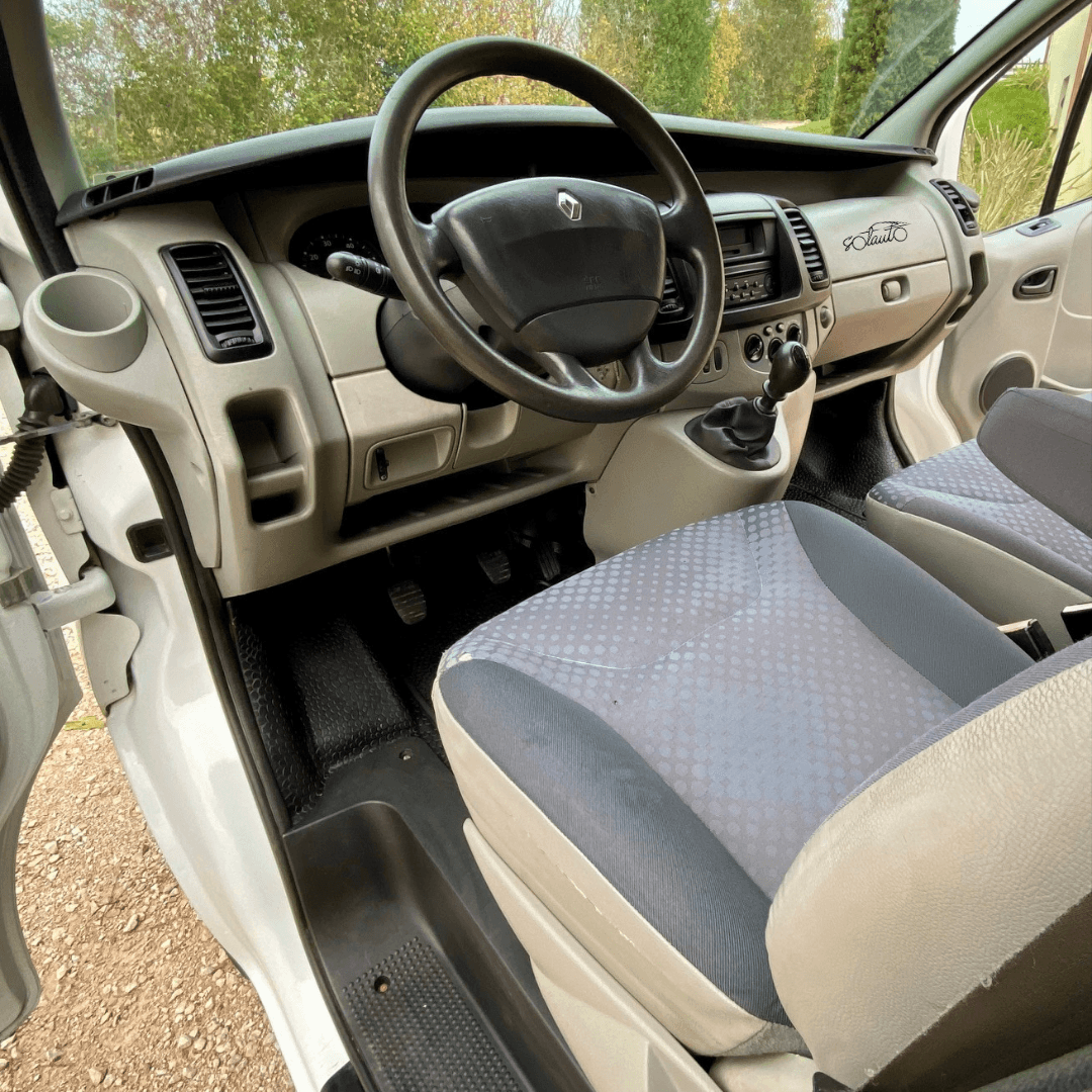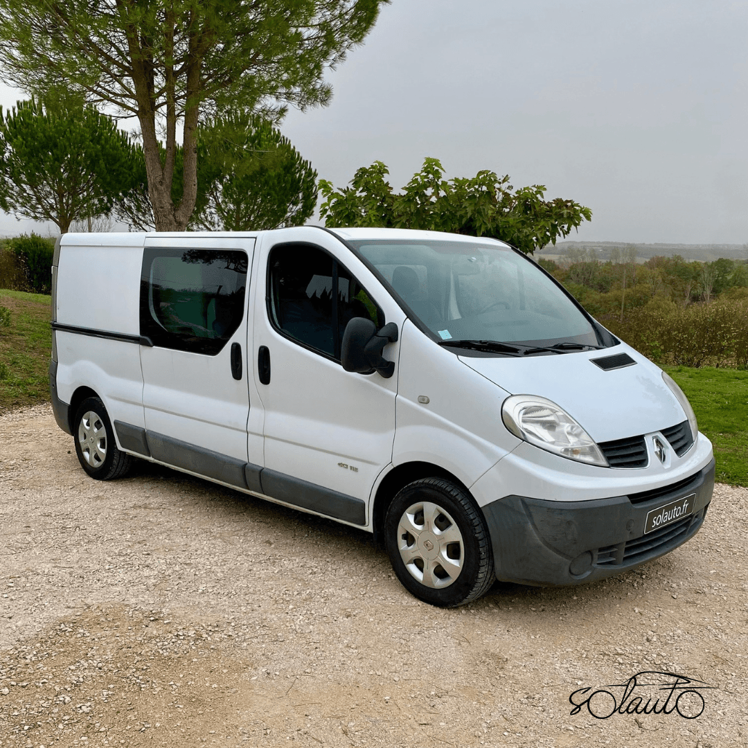 RENAULT TRAFIC L2 H1, 6 PLACES, 2.0 dci 115ch, 7ch fiscaux, BVM6. MEC 29/12/2008 avec 263500 km. Troisième main avec facture d’achat et carnet d’entretien RENAULT, CT OK. Entretien à jour : vidange, tous les filtres, injecteurs, bougies de préchauffages, pneus, rotules, parallélisme, batterie… neufs (3500 € de factures). Aucun frais à prévoir.